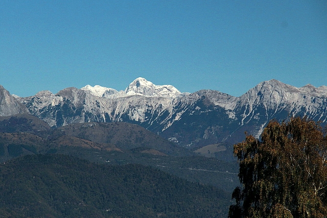Severna panorama z beneško-slovenskimi "gnezdi" in belim Očakom, spredaj pa Tolminske gore!