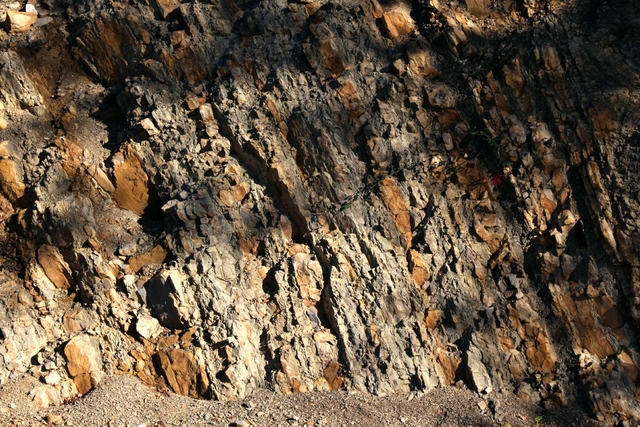 Flišne plasti na Kambreškem, kamor sodi tudi greben z Vrhovelj proti Koradi. Fliš ni nič drugega kot menjajoče se plasti zrnatih usedlin, sestavljene iz zaporedja različnih plasti peska, peščenjaka, laporovca, redkeje slojev apnenca in ilovice, v teh koncih večinoma eocenske starosti (torej nekaj 10 mio let, kaj se pa zamudimo). Plasti na sliki so posebne, ker so precej pokončne, za kar je poskrbela tektonika oz. po domače - premik in narivanje/gubanje v geoloških dobah po njihovem nastanku.