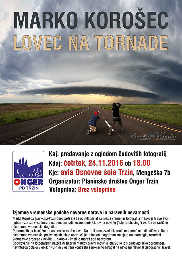 Ne pozabite: Predavanje "lovca na tornade" v Trzinu