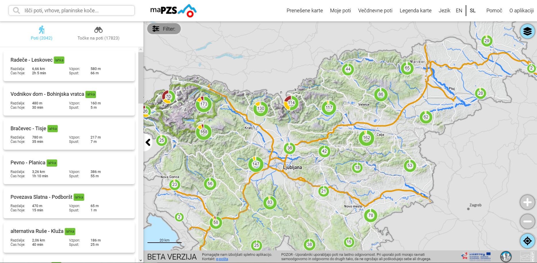 Podatki aplikacije maPZS so ažurni, saj se dnevno črpajo iz katastra planinskih poti PZS. Doma, na računalniku si lahko na zemljevidu izberete izlet ali turo glede na dolžino, območje, vaše sposobnosti in letni čas.