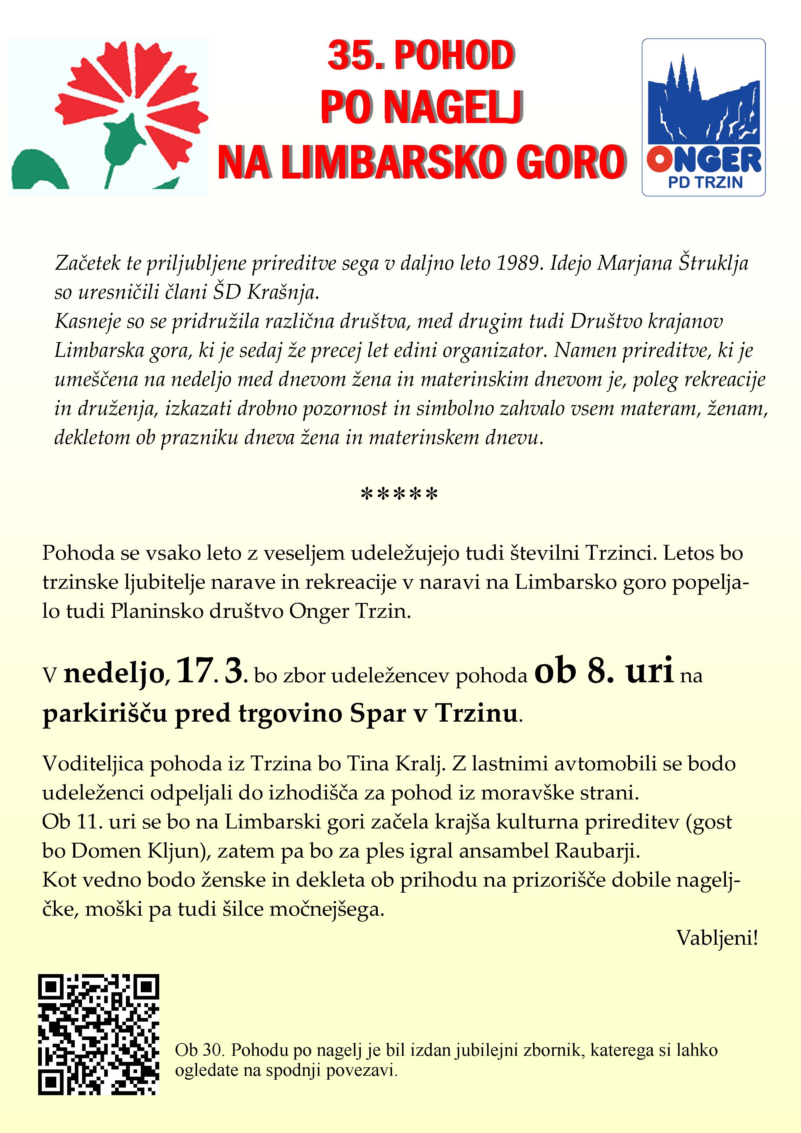 Po nagelj na Limbarsko goro s PD Onger Trzin
