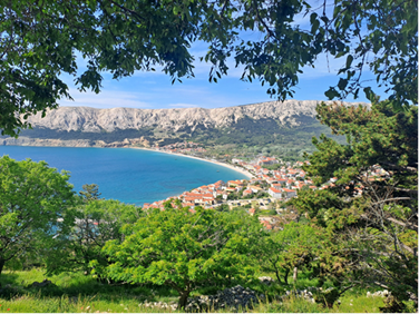 Najprej se bomo podali na izjemno prijetno stezo z razgledi na Baško in otok Prvič. Ta del poti je primeren res za vsakogar. Pot nas bo zlagoma pripeljala na planino Mjesec (380 m) ali Mesečev plato. Prva skupina bo lahko tukaj obrnila in se vrnila v Baško po isti poti pod borovci.