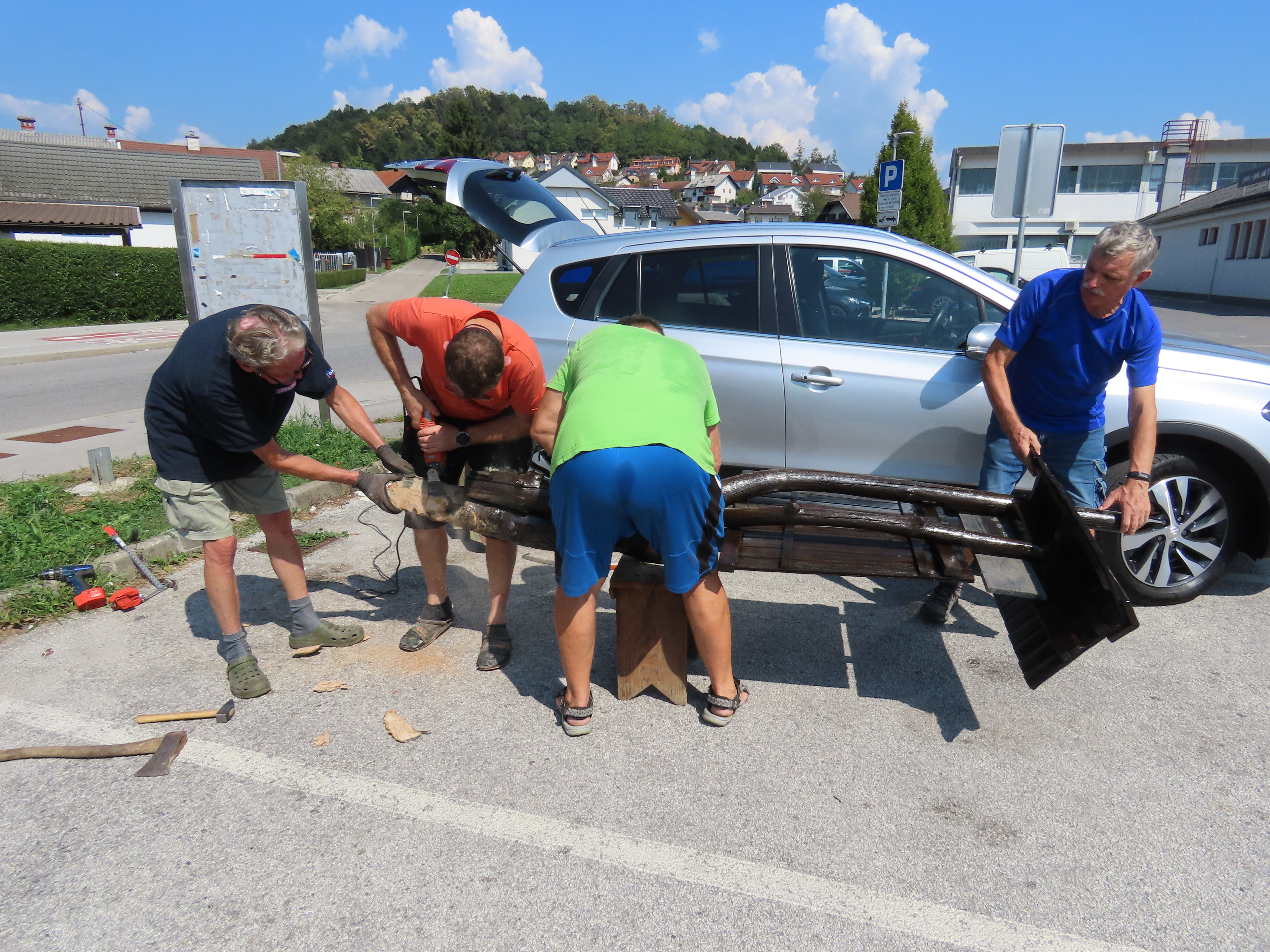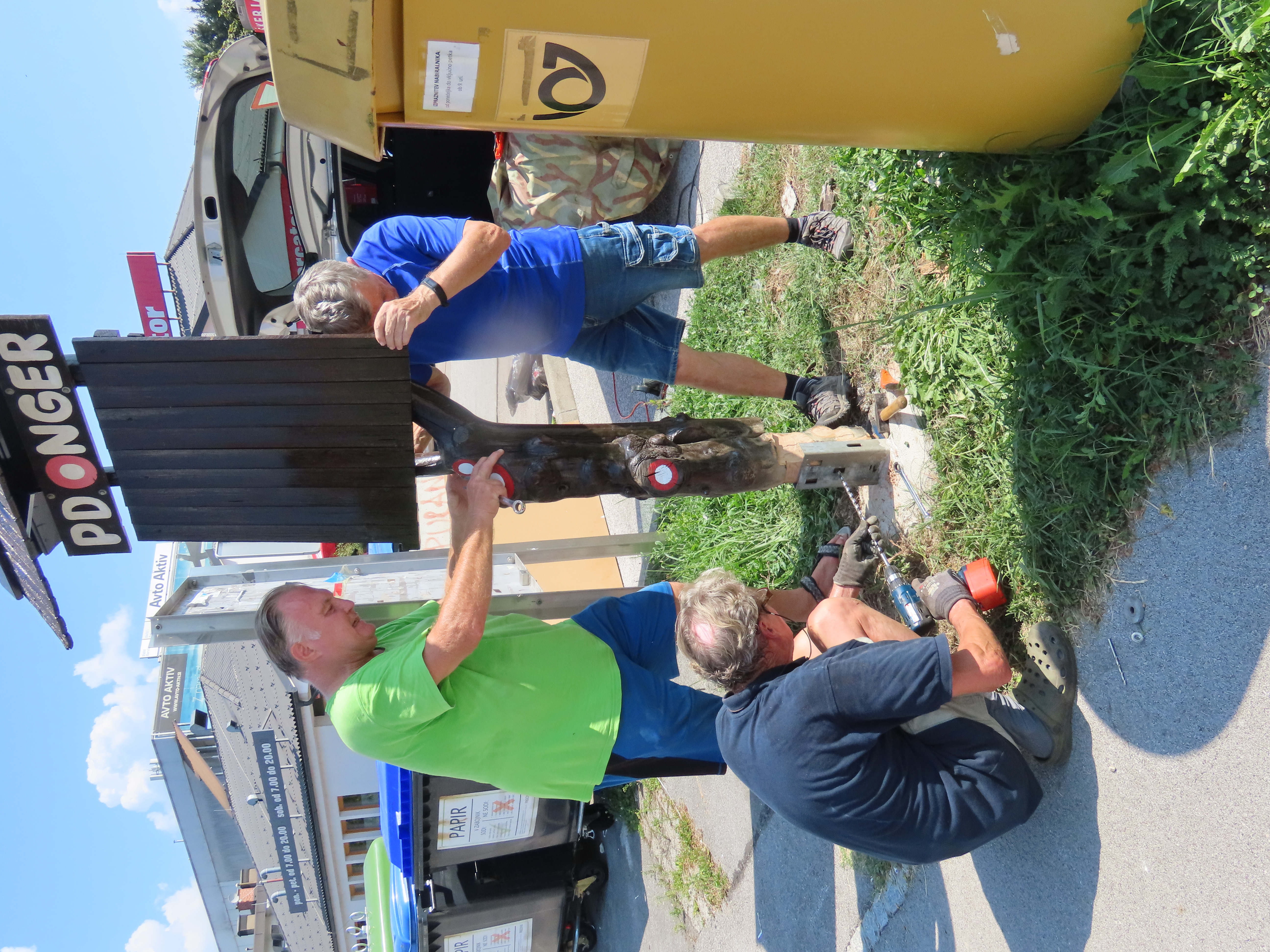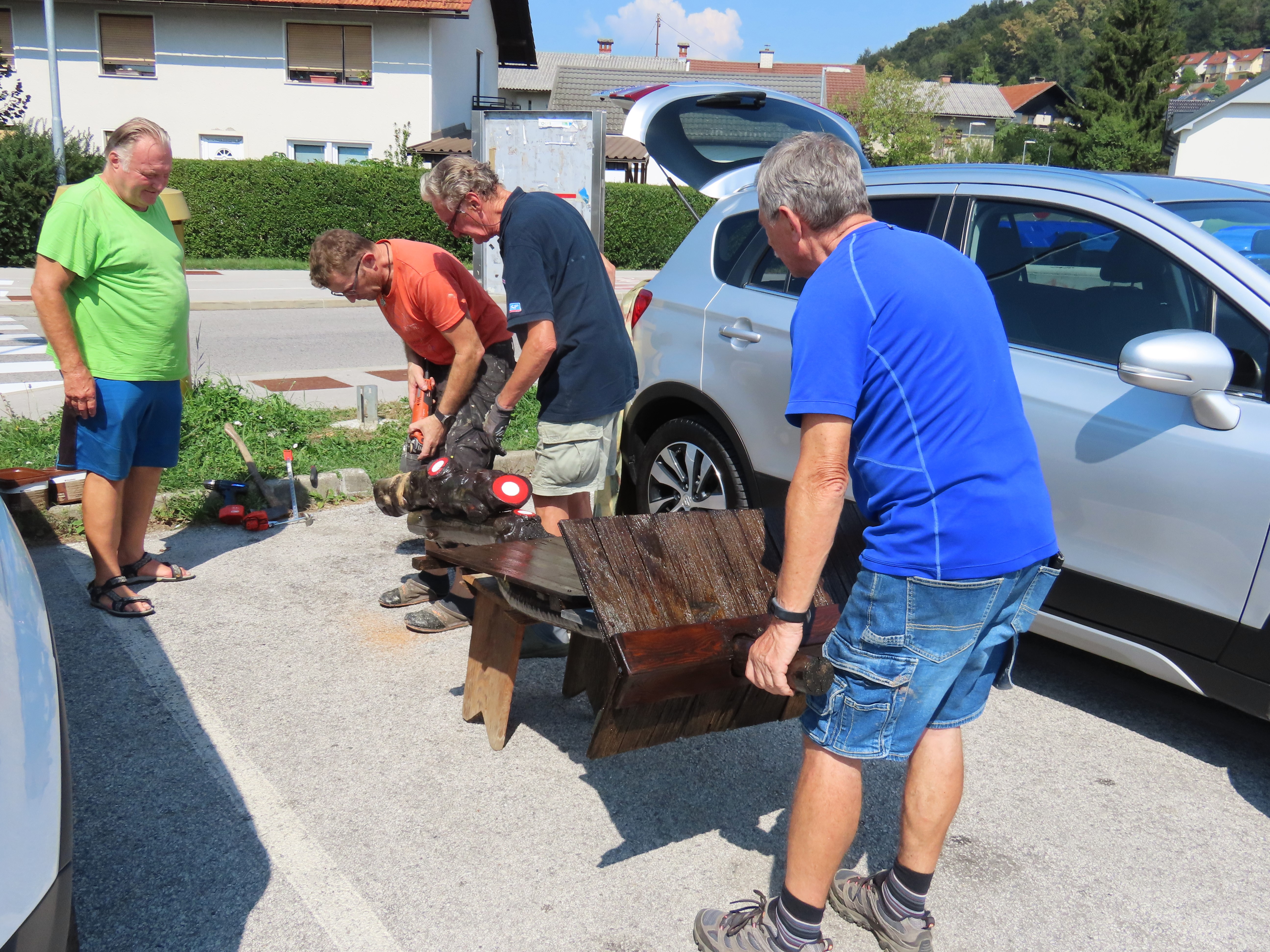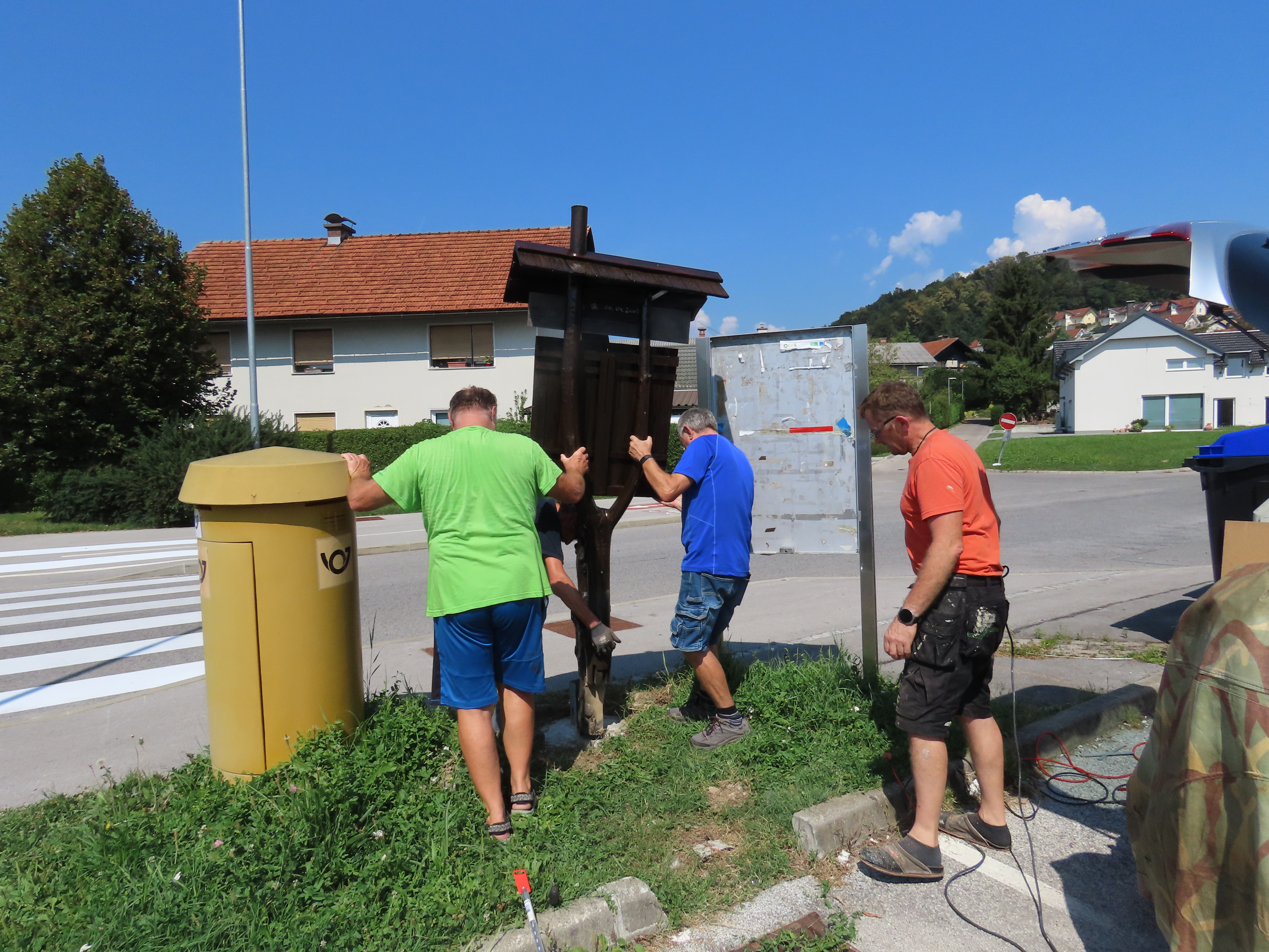 Po strokovnem posvetu so zaprosili mizarja Gregorja Pevca, da poskrbi za nov spodnji del nosilnega stebra, ki ga bodo tudi nekoliko dvignili od tal, da mu vlaga ne bo mogla do živega. Gregor se je z veseljem odzval in kot podpornik društva zastonj zamenjal spodnji del stebra. Odločil se je za trši javorov les. Markacisti so v tla zabetonirali nosilno podlago za tablo, tablo na novo zaščitno prebarvali in okrasili z markacijami, nato pa z manjšo delovno akcijo tablo trdno pričvrstili na novo podlago. V akciji so sodelovali: Danilo Oražem, Korl Kutoša, Metod Ciglar, Miro Štebe, na pomoč pa sta priskočila še Aleš Bratovž – Leko, ki je pomagal tudi z električnim dletom primerno obtesati spodnji del table ter Gregor Pevc.