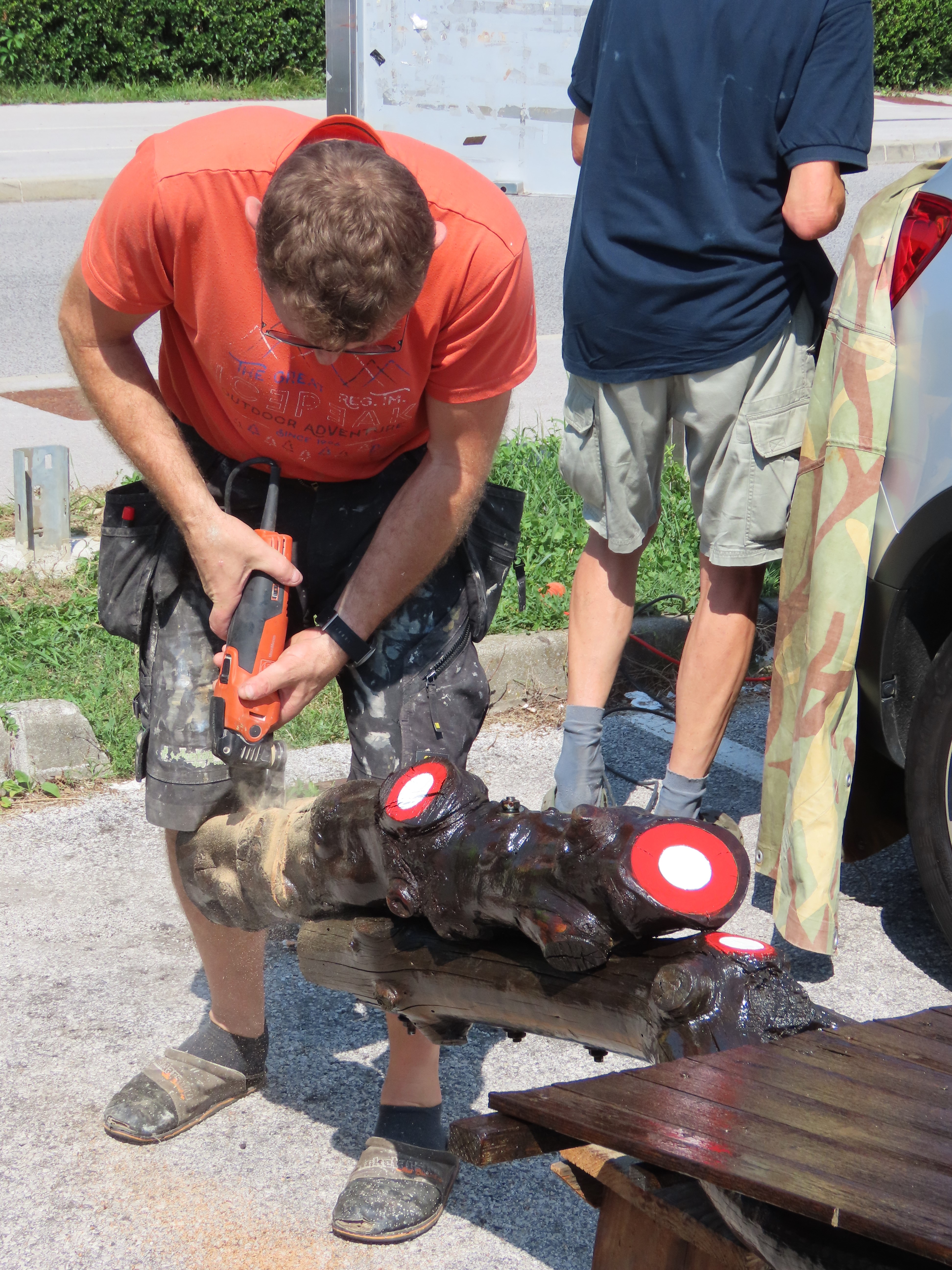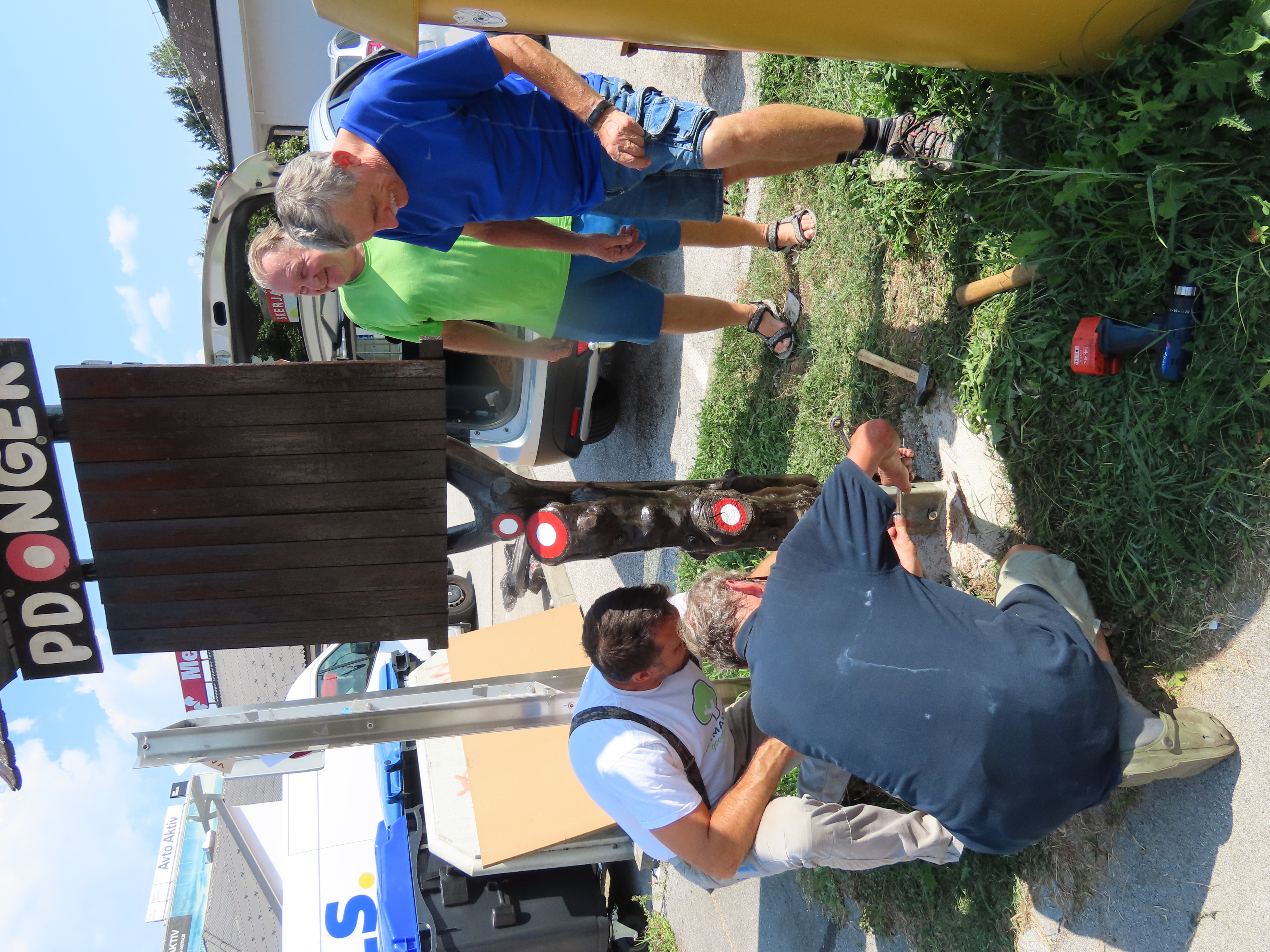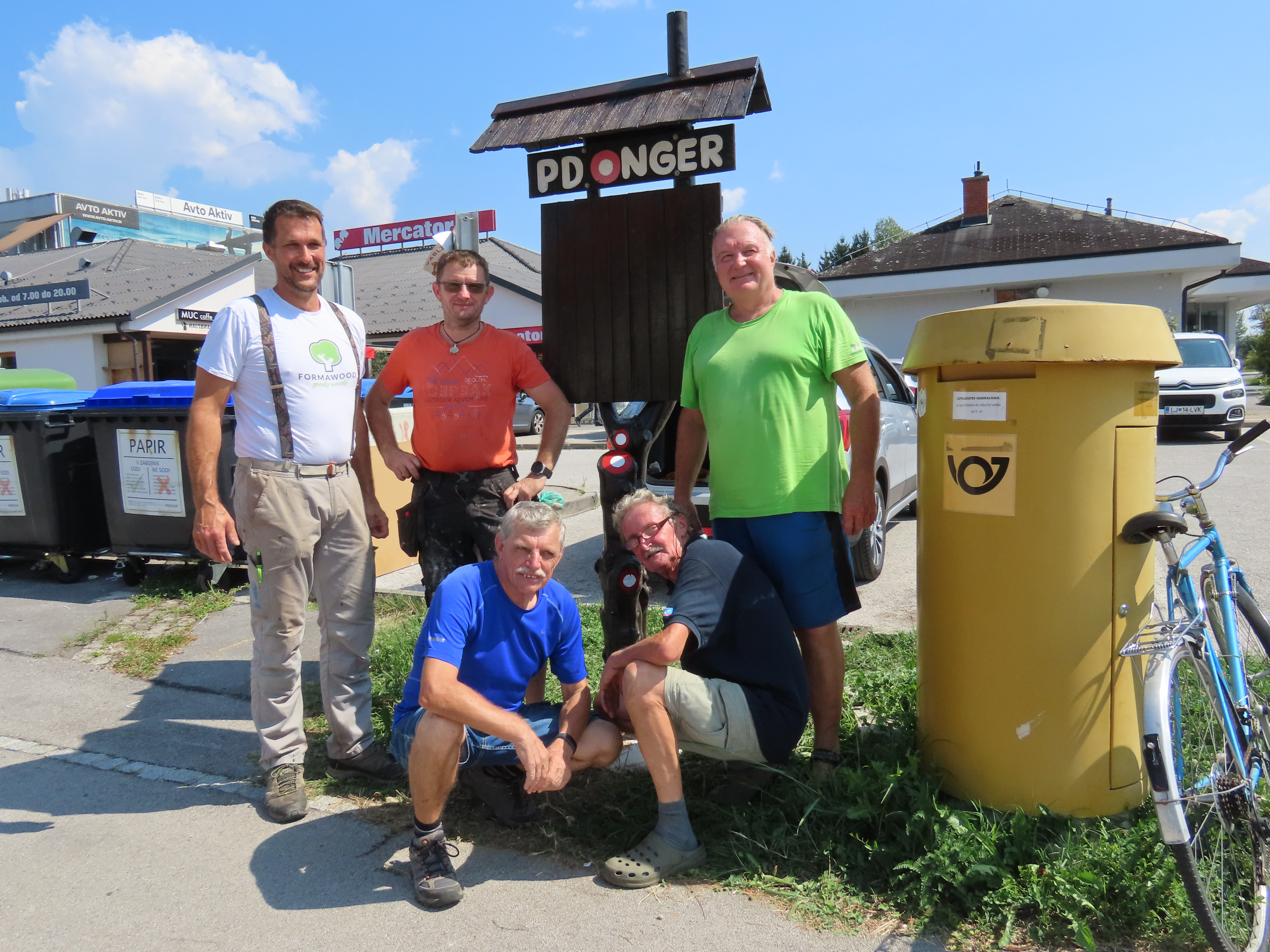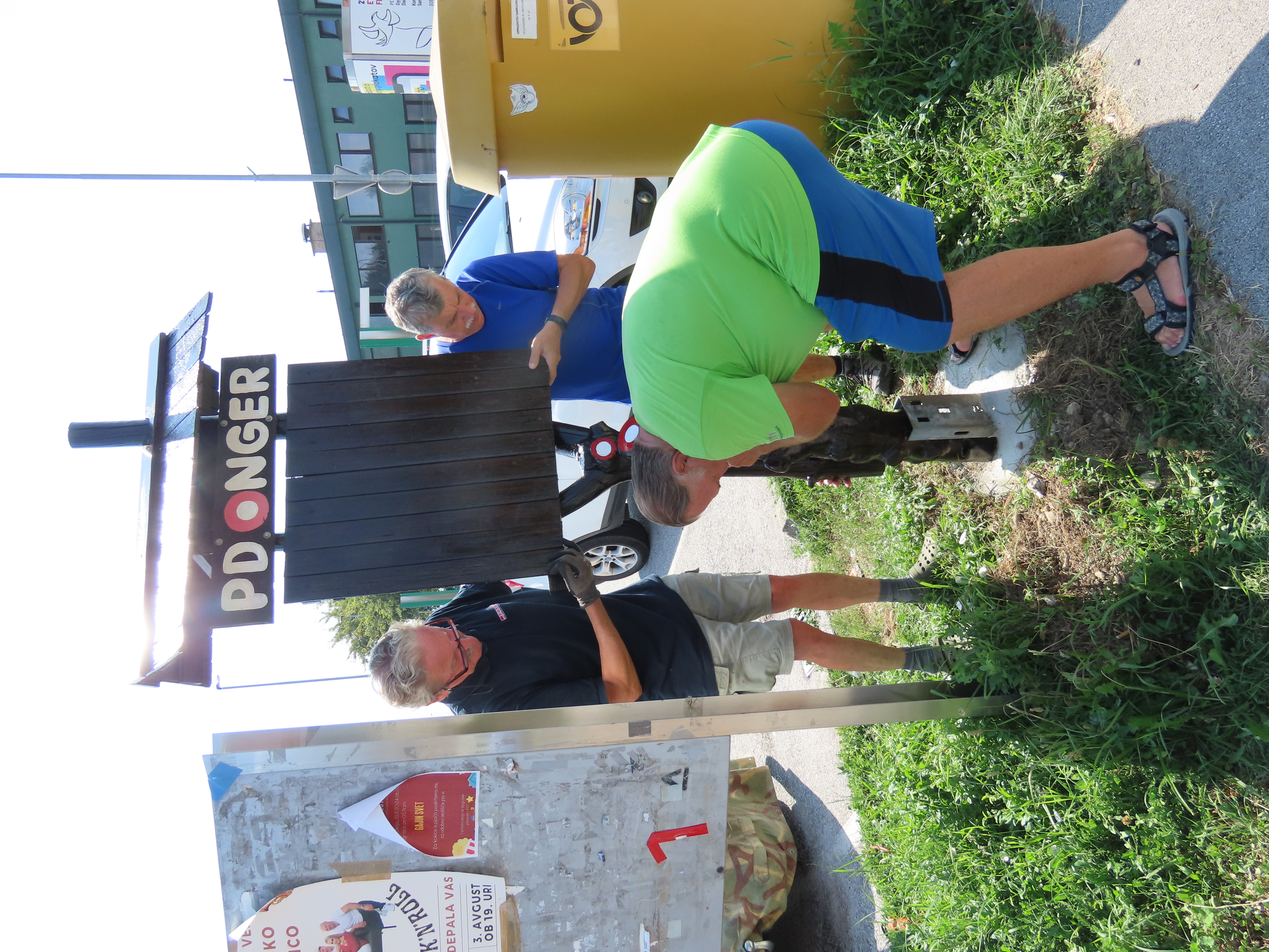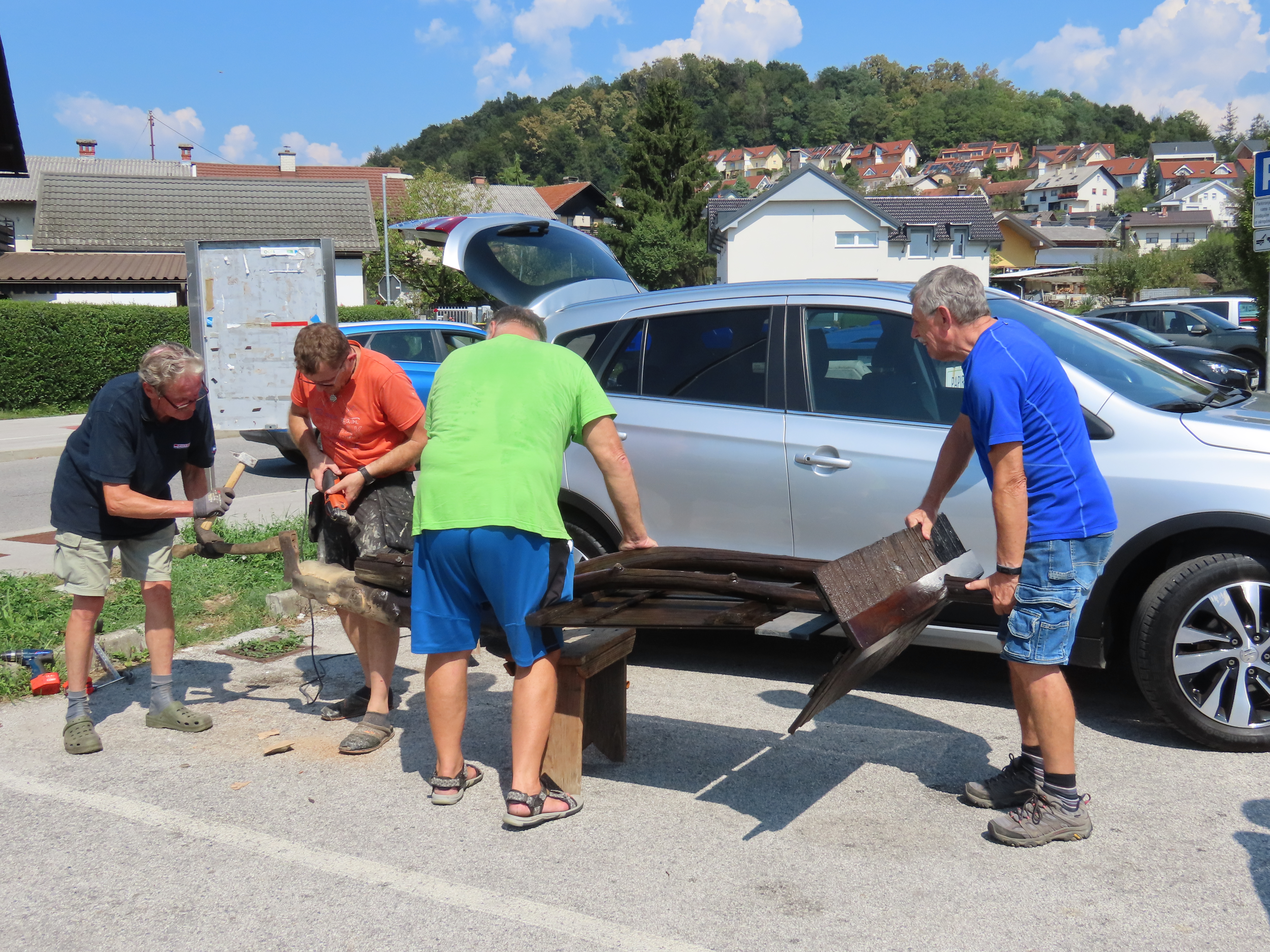 Po strokovnem posvetu so zaprosili mizarja Gregorja Pevca, da poskrbi za nov spodnji del nosilnega stebra, ki ga bodo tudi nekoliko dvignili od tal, da mu vlaga ne bo mogla do živega. Gregor se je z veseljem odzval in kot podpornik društva zastonj zamenjal spodnji del stebra. Odločil se je za trši javorov les. Markacisti so v tla zabetonirali nosilno podlago za tablo, tablo na novo zaščitno prebarvali in okrasili z markacijami, nato pa z manjšo delovno akcijo tablo trdno pričvrstili na novo podlago. V akciji so sodelovali: Danilo Oražem, Korl Kutoša, Metod Ciglar, Miro Štebe, na pomoč pa sta priskočila še Aleš Bratovž – Leko, ki je pomagal tudi z električnim dletom primerno obtesati spodnji del table ter Gregor Pevc.
