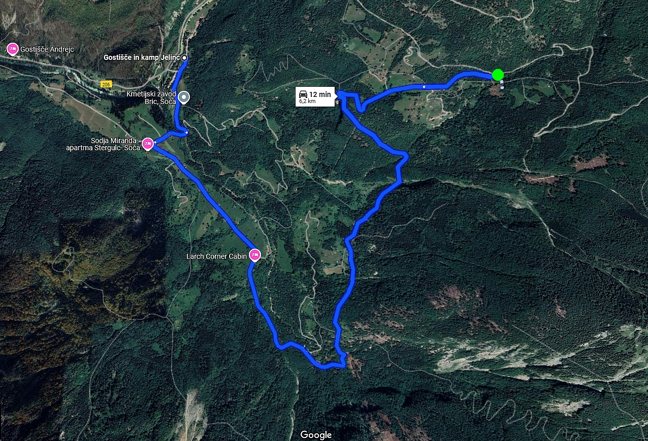 Odhod 3): Parkirišče na serpentini (6,2 km) na cesti Soča (kamp Jelinc)–vas Na Skali.