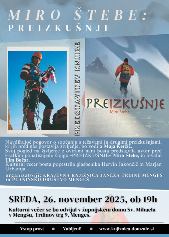 Predstavitev nove izdaje knjige Preizkušnje bo v Župnijskem domu Sv. Mihaela v Mengšu v sredo, 26. 11. 2025 ob 19.00.