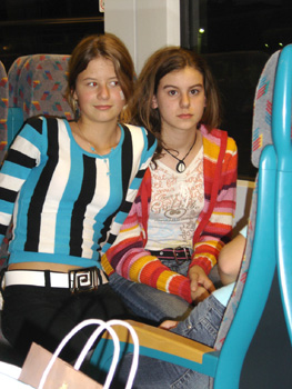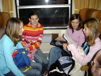 PS »Nore krave« (Petra, Lara, Eva in Neli) so še na vlaku ponavljale snov planinske šole. |