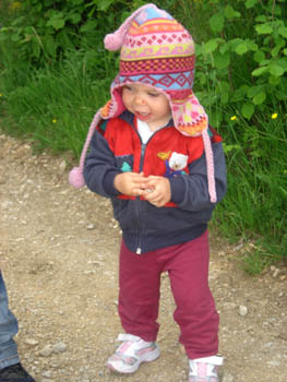 Za Tijo je bil hrib verjetno kar visok – zato se je »odločila«, da del poti prepotuje tudi na maminem hrbtu. |