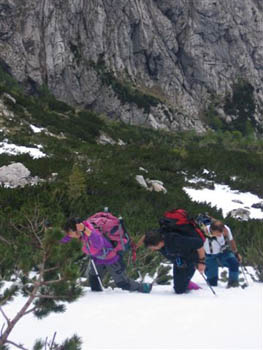 Po tavanju v gosti megli ter močnih sunkih vetra na Malih Podih smo vendarle osvojili Koroško Rinko - Križ (2433 m), skozi Žmavčarje. Novega snega je do pol metra! V megli nas je vodil Miro, zraven smo bili še Bogdana, Lado ter Tomaž.