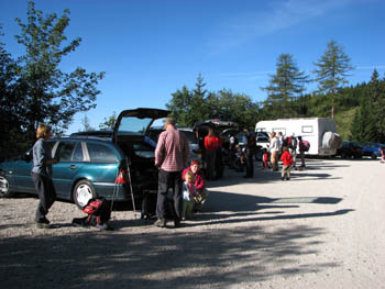 Na parkirišču pred Kapelsko kočo (Eisenkappler Hütte)