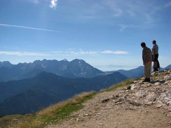 Levo dolg greben Košute, zadaj desno se vidi Triglav.