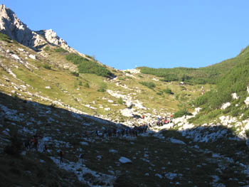 Na Jezercih sledi srečanje s 100 ženskami (z nekaj vodniki), ki so se odločile vzeti mero Triglavu, …