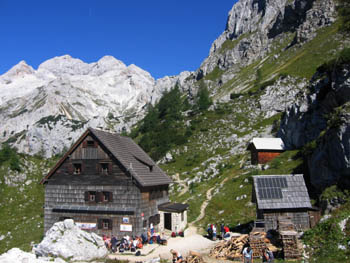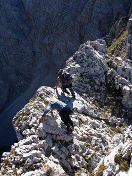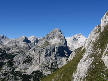 Veliki Draški vrh, zadaj levo pa nas pozdravlja Triglav. |