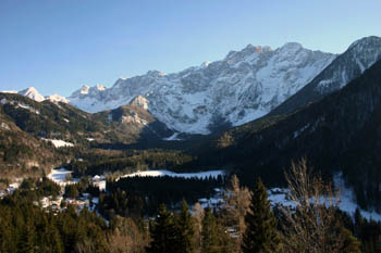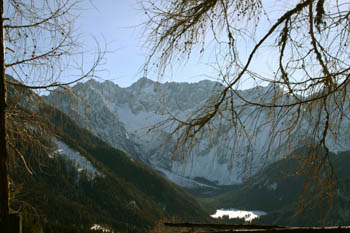 Pogled na jezerske hribe: od Bab, Rink, Skute do Dolgega hrbta in Grintovca. Narava tu res ni skoparila z lepoto. |