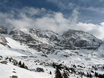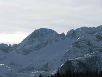 Cesta na planino Pecol je zasnežena, tako, da jo je treba od Nevejskega prevala mahniti navzgor kar peš. Potem naprej proti Škrbini med Montažem ter Curtissonsonom (preval Vrh Strmali (Forca dei Disteis, 2201 m) leži na levi strani Montaževega vznožja, op. EP). Ob obilici težav sva turo zaključila nekje na 3/4 poti, prijateljica pa je potegnila do vrha. No, sonce pod Montažem je pa le močno sijalo! Smuka po cesti pa je bila prav prijetna.