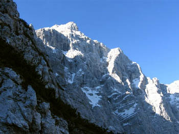 Tomaž nam je dogajanje ta vikend nad dolino Vrat opisal takole: Znana trzinska alpinistična druščina je v soboto, 28.4.2007, kraljevala v severni steni Triglava. Stena je bila v bistvu prazna, nikjer ni bilo žive duše, razen nas! Midva z Mirom sva šla po Slovenski smeri - varianta mimo Macesnov preko Prevčevega izstopa, sestopila sva čez Prag. Jaz, osebno imam dovolj adrenalina za nekaj dni! Pa Triglav, tako blizu je bil, ... sneg pa preveč južen ... ni se nama dalo več ...