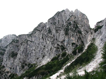 Je pa prav zanimivo: pot je uradno markirana, a po moje bi morala biti tako podrta grapa ZAPRTA!! Res, precej nevarno izgleda vse skupaj, ne vem kako si tole predstavljajo domači markacisti!