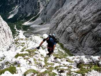 Začetek plezanja v grapi je izredno adrenalinski |