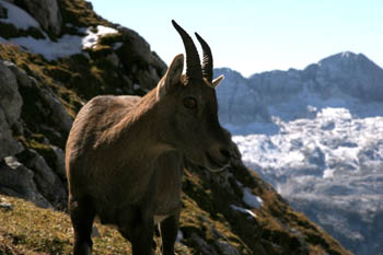 Veliki Nabojs (Grande Nabois, 2313 m) in Viš (Jôf Fuart, 2666 m), zadaj pa Kamniti lovec