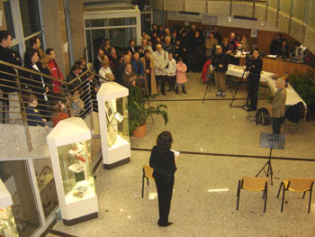 Gospa Marta Starbek Potočan je domiselno razvrstila razstavne predmete v avlo Centra Ivana Hribarja. No, tu je treba še enkrat omenit, da je sam prostor precej omejujoč. Več vrat, ograje, že vgrajene vitrine – to verjetno res ni najbolj vzpodbuden prostor za kateregakoli postavljalca. In zato lahko go. Marto še enkrat pohvalimo, da je izvrstno izkoristila dane možnosti in s postavitvijo izkoristila dane možnosti.