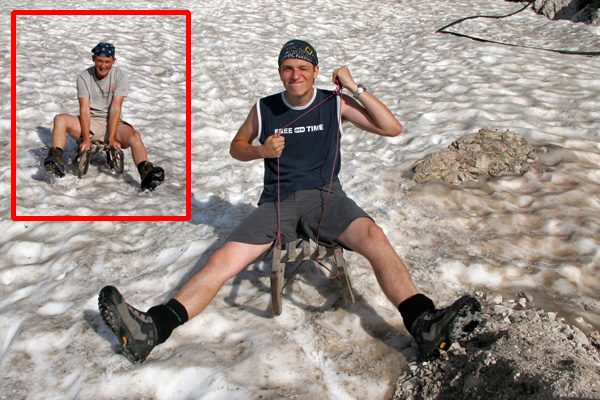 Sankanje na snežišču pri koči Corsi