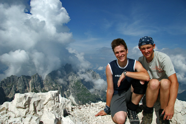 Boštjan in Simon sta 8. avgusta obiskala Viš (furlansko Jôf Fuart, kar pomeni »Mogočna gora«, nemško Wischberg). Na 2666 metrov visoko goro sta se odpravila kar zgodaj, saj sta z Nevejskega sedla (slovensko: V Žlebeh, glej dr. Henrik Tuma: Imenoslovje Julijskih Alp: ... in planina 1166 m Nevea, slovensko: V Žlebeh, po listini iz l. 1582 še Slips ali Glača.) začela hoditi ob 5:40. Ubrala sta običajno pot, ki pripelje najprej do koče Guido Corsi (Rifugio Guido Corsi, 1874m). Boštjan pravi: Pot na vrh je izpeljana zelo lepo. Približno 200-300 metrov pod vrhom se pot združi s potjo Anita Goitan, ki je po opisih sodeč ena izmed bolj drznih ferat v Julicih. Na žalost sva bila zadnjo uro in pol več ali manj v megli. Približno dvesto metrov pod vrhom nisva opazila odcepa na vrh (zelo slabo je označeno!) in sve šla proti Škrbini zadnje Špranje. Vrnila sva se nazaj in našla odcep (izgubila pa sva cca 30-40 minut). Na vrh sva prišla tako po petih urah skupne hoje (po vodnikih je 5,5-6 ur hoje); višinska razlika 1500 m (potrebno je prištet 200 metrov kolikor jih izgubiš pri spustu z enega izmed sedel). Na poti navzdol sva srečala nekaj ljudi, ki so šli še gor, vendar ravno hude gneče ni bilo (par minut pred nama je bil na vrhu en gospod, ko pa sva se spuščala sva srečala še cca. 15 ljudi).