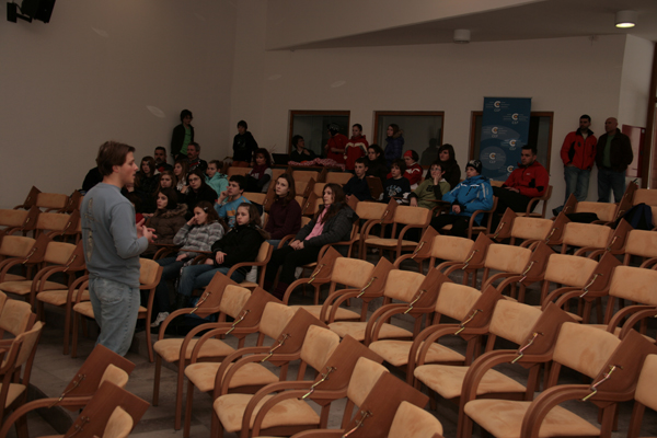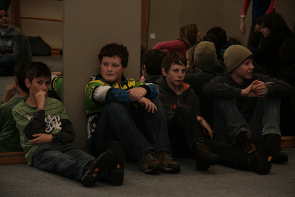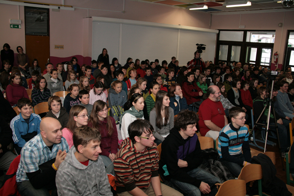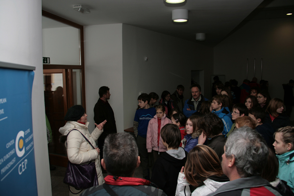 054. Ker so se skupine v Avditoriju zaradi ogleda gradu menjavale, je moral tudi Boštjan svojo zgodbo povedati večkrat.