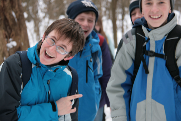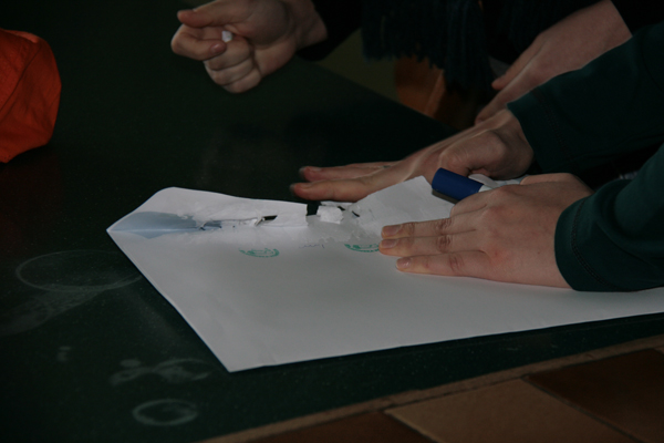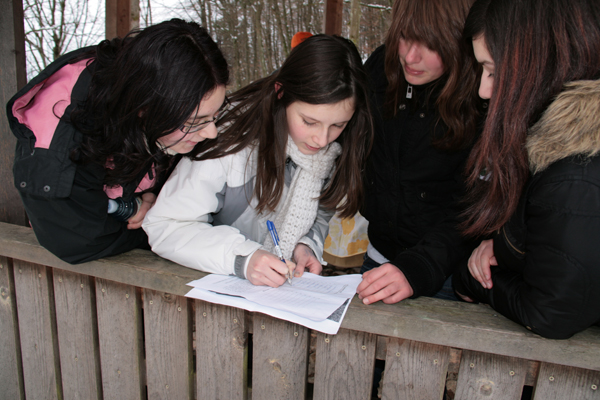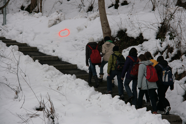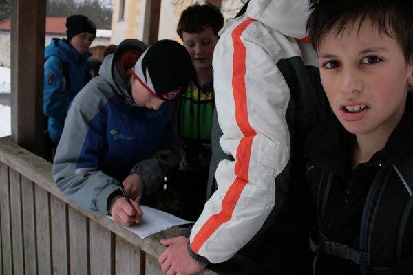 043. Med potjo so mladi verjetno opazili prav posebno markacijo - Trzinsko skerco - ki označuje 'Pot okoli Trzina'.