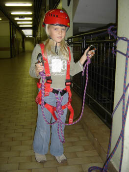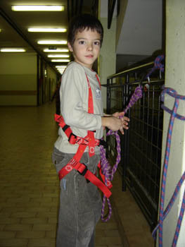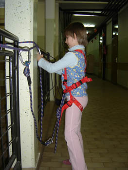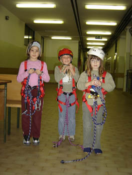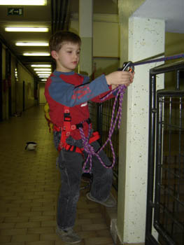 Planinska skupina Bibe je spet pridobivala nova znanja. Tokrat je Ireni priskočil na pomoč Boštjan in pripravil vrvno ograjo (kar na hodniku OŠ Trzin). Bilo je prav prijetno.