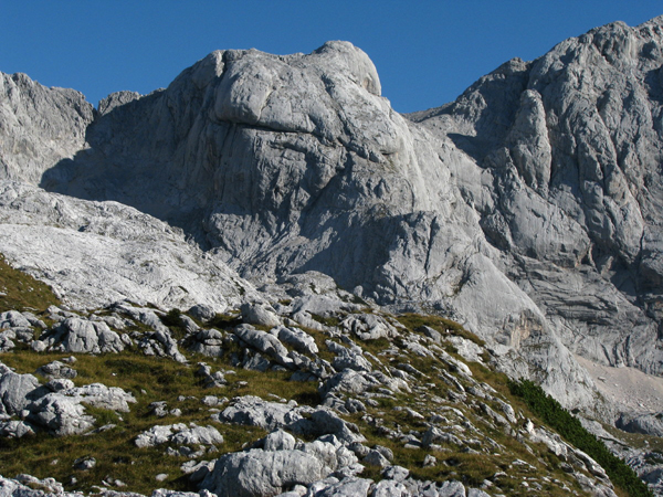 Še naprej plezanje ... s puščico je označen Bivak pod Grintovcem