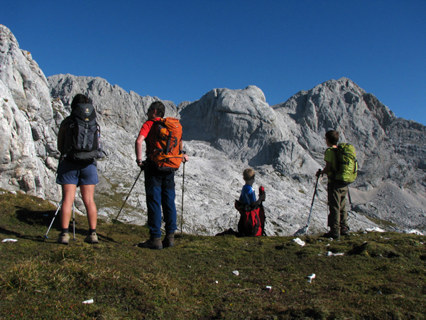 Pogled na tri zanimive vrhove, vredne obiska: Dolgi hrbet (2473 m), Štruca (2457 m) in Skuta (2532 m).