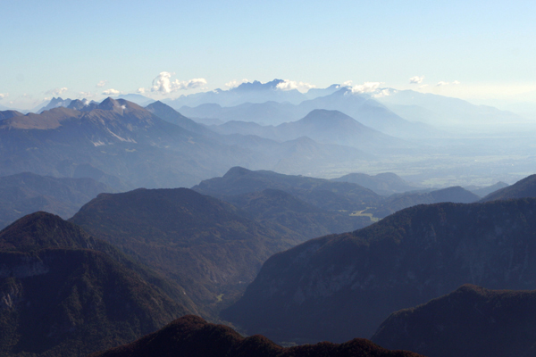 Šplevta (v sredini), Kukova špica (levo), v ozadju greben Karavank in Grintavci.