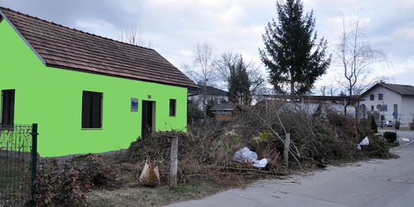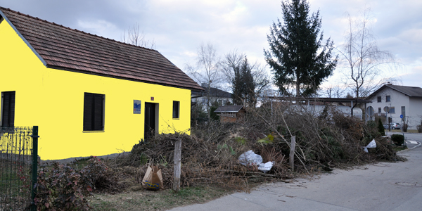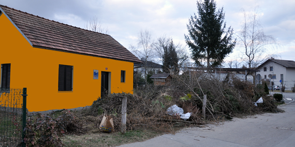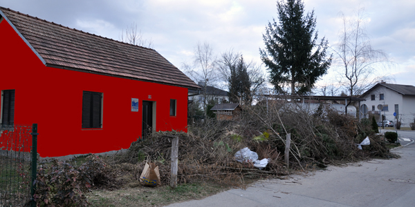Ker se je določeno obdobje hišica komaj še videla na cesto (da o "zadelanem dostopu do nje niti ne govorimo), so se umne glave gospodarskega odseka odločile, da hišico v tej sivini vsaj naredijo vidno! Da bodo ljudje sploh vedeli, komu so naložili veje pred vhod.