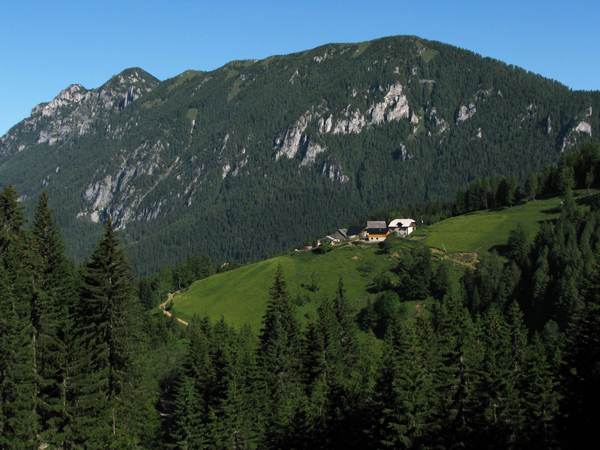 Bukovnik, najvišja slovenska kmetija, zadaj Olševa.