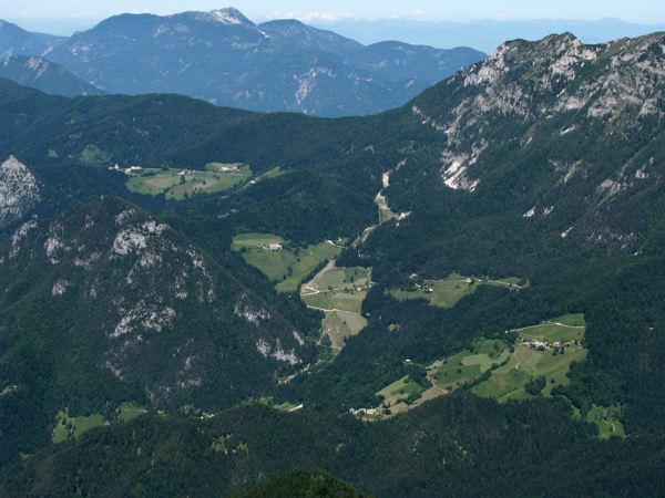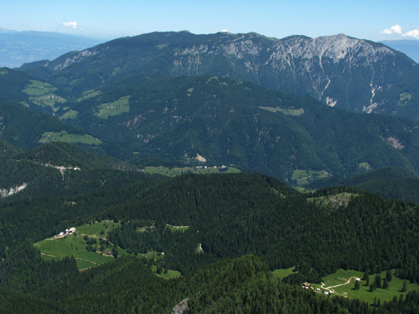 Se že vračamo, desno Grohat., levo Bukovnik in zadaj spet gora kralja Matjaža.