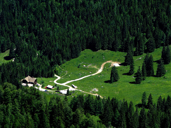 Vsi skupaj smo se pripeljali do naše najvišje kmetije, kolesarja pa še naprej do koče na Grohatu. Tu smo se poslovili, ona dva sta jo mahnila nazaj in po panoramski cesti prek Podolševe v Matkov kot, potem pa po dolini nazaj na Kranjsko.