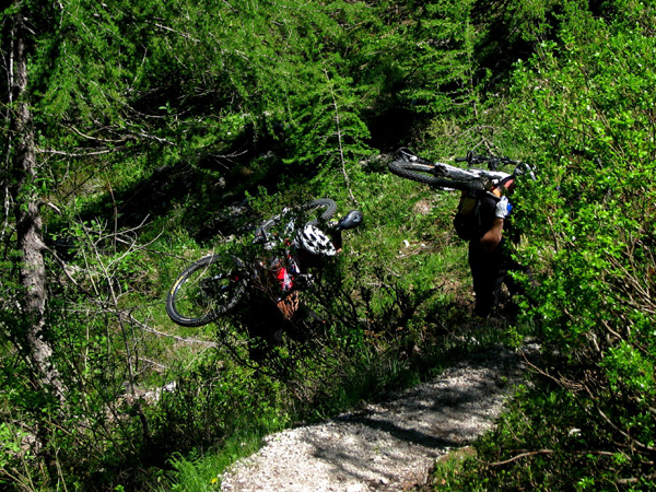 Ali nošnja kolesa za spust z Durc proti koči na Loki pod Raduho še predstavlja "turno kolesarstvo" ...?