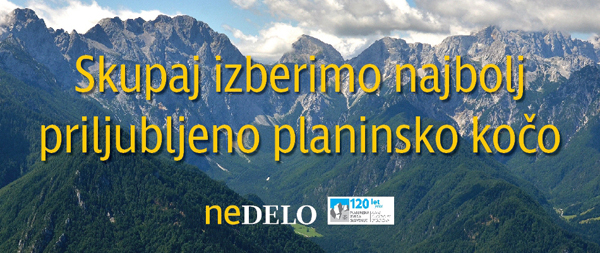 Planince in bralce Nedela vabimo, da na Nedelo pošljete fotografijo, ki ste jo posneli pred svojo najljubšo kočo, in jo pospremite z nekaj vtisi o izletu in koči. Fotografijo s kratko utemeljitvijo in svojimi podatki pošljite na naslov Nedelo, Dunajska 5, 1509 Ljubljana ali planine.nedelo@delo.si. Upravitelje koč, ki bodo prejele največ vaših glasov, bomo nagradili z uporabnimi nagradami, simbolične nagrade pa bomo razdelili tudi med izžrebane bralce, ki boste pošiljali predloge in svoje zgodbice. Vsak teden pa bodo nagrajeni tudi glasovalci.