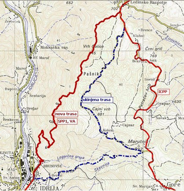 Sprememba poteka dela trase SPP (okolica Idrije) 11.08.2013