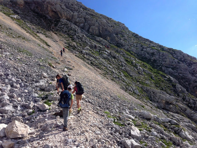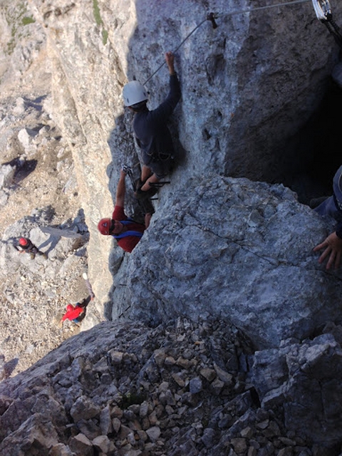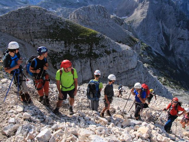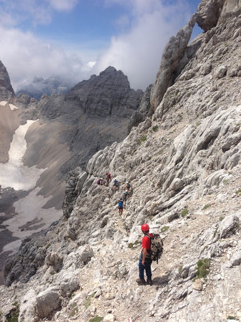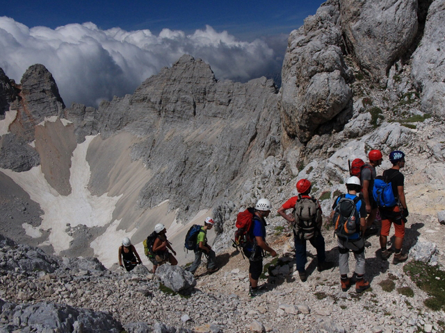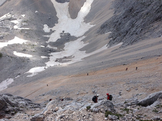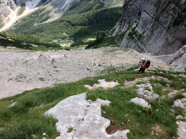 Navzdol je treba biti previden, saj ni do težjih mest nobenih varoval, veliko pa je podrtega skalovja. Foto: Janez Nastran