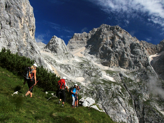Južna soseda, Dolkova špica, čez zoprno Rdečo škrbino nas čaka popoldanski vzpon. Foto: Janez Nastran