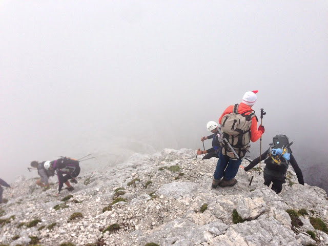 Pod Bovškimi vratci nas je "požrla" megla, ki ji je pritegnil še veter! Foto: Janez Nastran