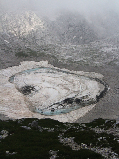 Tik pred kočo spet snežišča, bo vsaj voda … Foto: Janez Nastran