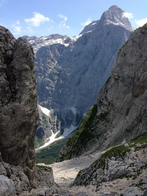 Opa, tale luknja na desni je pa zatrep Krnice oz. zgornji del Kriške stene. Foto: Janez Nastran