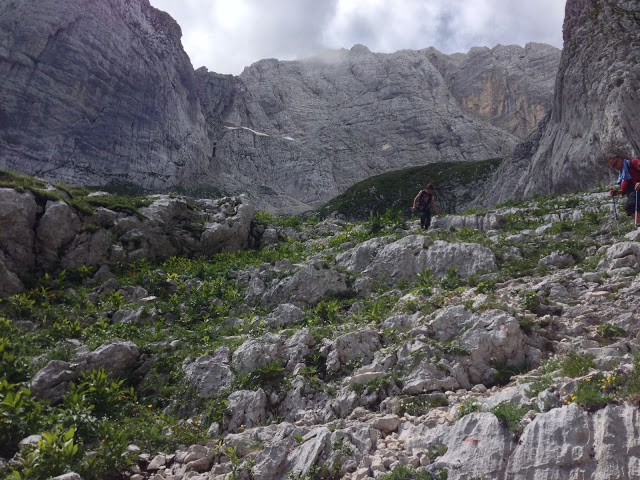 Pod Dovškim Gamsovcem se začnejo zakraseli lašti, končno nekaj, kar se ne kruši in drži gojzarje! Foto: Miha Pavšek