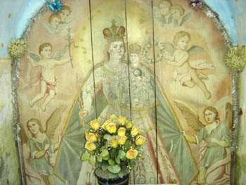 Pogled v kapelico: Marija z Jezusom in angeli. |