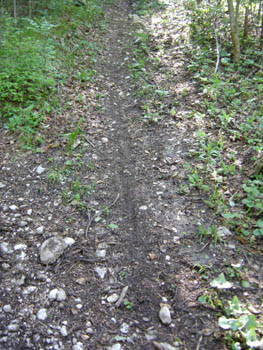 V spodnjem delu poti večkrat lahko opazimo "zapuščino" gorskih kolesarjev - zaradi blokiranih koles pri zaviranju za njimi ne more ostati nič drugega kot - kanali. Res škoda, da so tako neosveščeni ... |