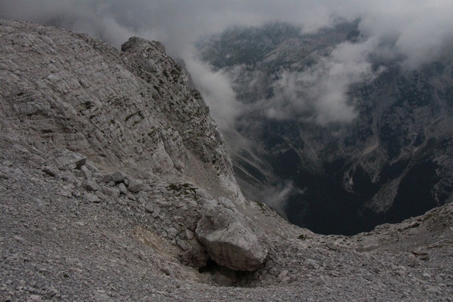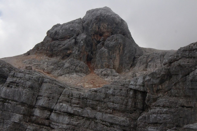 Glava (2426 m) in njen sveži podor – konec plezarije je že čisto blizu, ture pač ne!