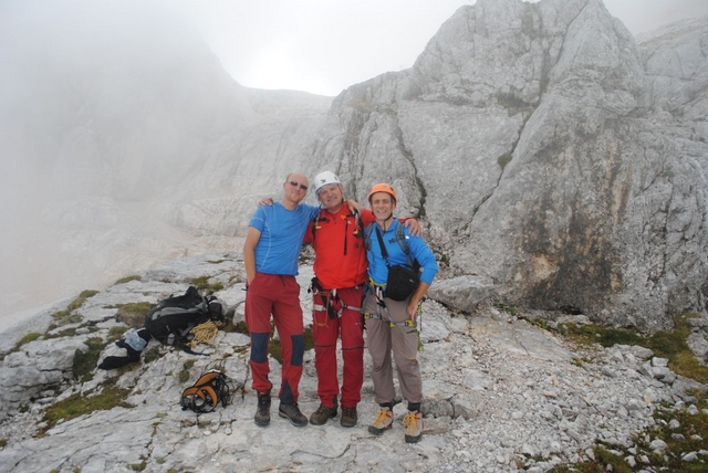 Ker bom kimavca okrogel (malce zaobljen sem že od prej), me je hribovski prijatelj Andrej in vodnik (PD Kamnik) presenetil z izvirnim darilom – vzponom po Slovenski smeri prek Stene. Po načelu "bolje drži, nego lovi ga", sva jo mahnila še pred koncem (meteorološkega) poletja. Pridružil se nama je še primorski vodniški starosta Boris (Obalni PD), s čimer je bila triperesna vodniška deteljica (skoraj) popolna.