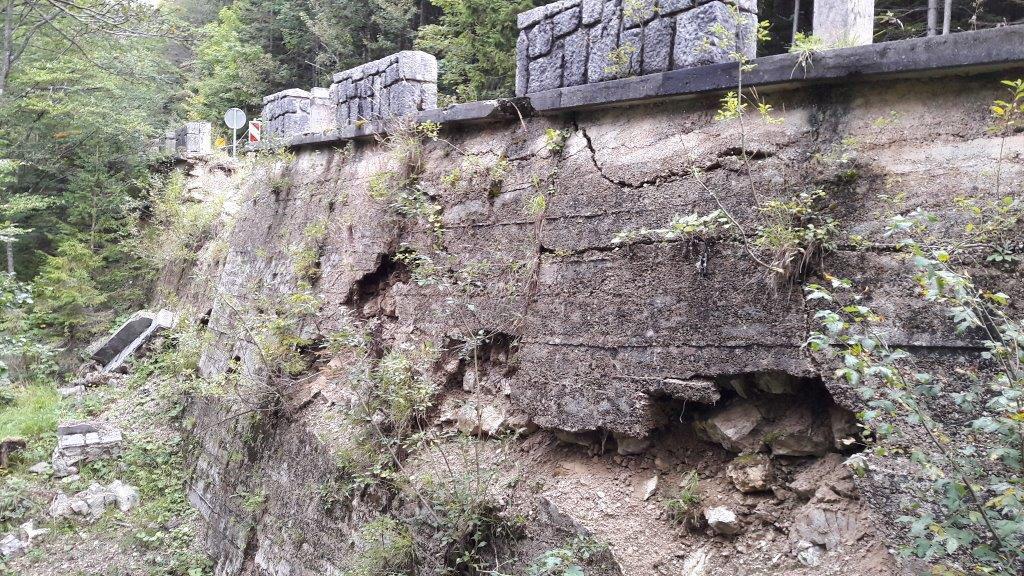 Obnovili bodo dober kilometer ceste na odseku Erika-Vršič in sanirali 9 metrov visok močno dotrajan zid. Foto: Direkcija za infrastrukturo